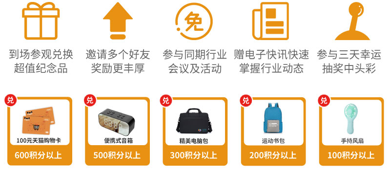 第十屆上海國(guó)際泵閥展預(yù)登記通道現(xiàn)已正式開啟,現(xiàn)在報(bào)名預(yù)登記即享多重觀展禮遇,提名人/組團(tuán)發(fā)起人按實(shí)際預(yù)登記人數(shù)獲得相應(yīng)的積分獎(jiǎng)勵(lì),積分可在展會(huì)現(xiàn)場(chǎng)兌換天貓購(gòu)物卡、便攜式音響、運(yùn)動(dòng)書包等精美禮品。